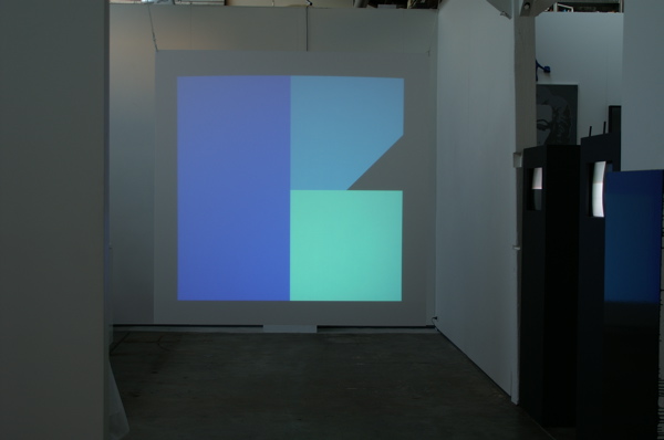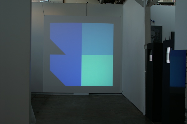 This piece draws upon the geometry used in paintings and constructions that I made in the 1970s. In this case, the forms and colours respond to the sounds in the gallery space. The work was shown in 'Ernest Edmonds and David Thomas', Conny Dietzschold Gallery, Sydney, 2005.